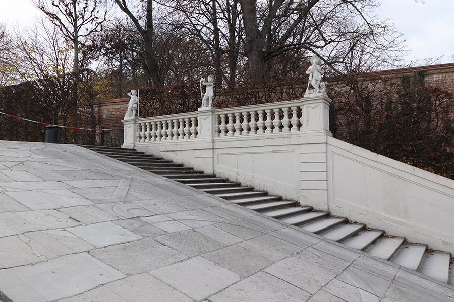 Der Putto im Garten des Belvedere steht sinnbildlich für den Monat August, für Hochsommer, Reife und Ruhe nach der Arbeit. Zu seinen Füßen liegt ein Lamm, neben ihm lehnt ein Stab. Die Figur ist ein Werk von Hans Gasser und datiert auf die Jahre 1850–1852.