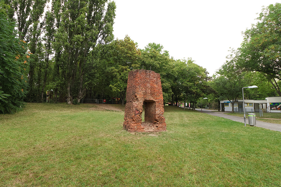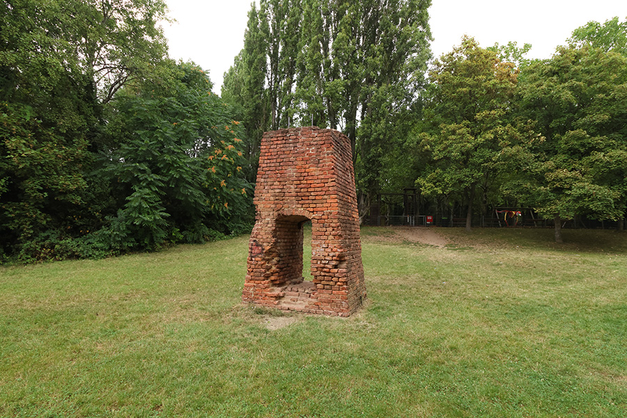 Nordwestlich des Kurparks Oberlaa befindet sich dieser rund 4 Meter hohe Ziegelpfeiler - ein Rest der Ziegelöfen am Laaerberg.