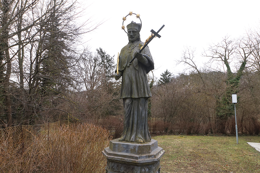 Johannes von Nepomuk lebte im 14. Jahrhundert in Böhmen und war Priester sowie Generalvikar des Erzbischofs von Prag. Der Überlieferung nach wurde er 1393 auf Befehl von König Wenzel IV. in die Moldau gestürzt, weil er das Beichtgeheimnis der Königin nicht preisgeben wollte. Deshalb gilt er als Märtyrer des Beichtgeheimnisses und als Brückenheiliger. Häufig findet man seine Statuen auf oder nahe von Brücken, und er wird als Schutzpatron gegen Wassergefahren verehrt.